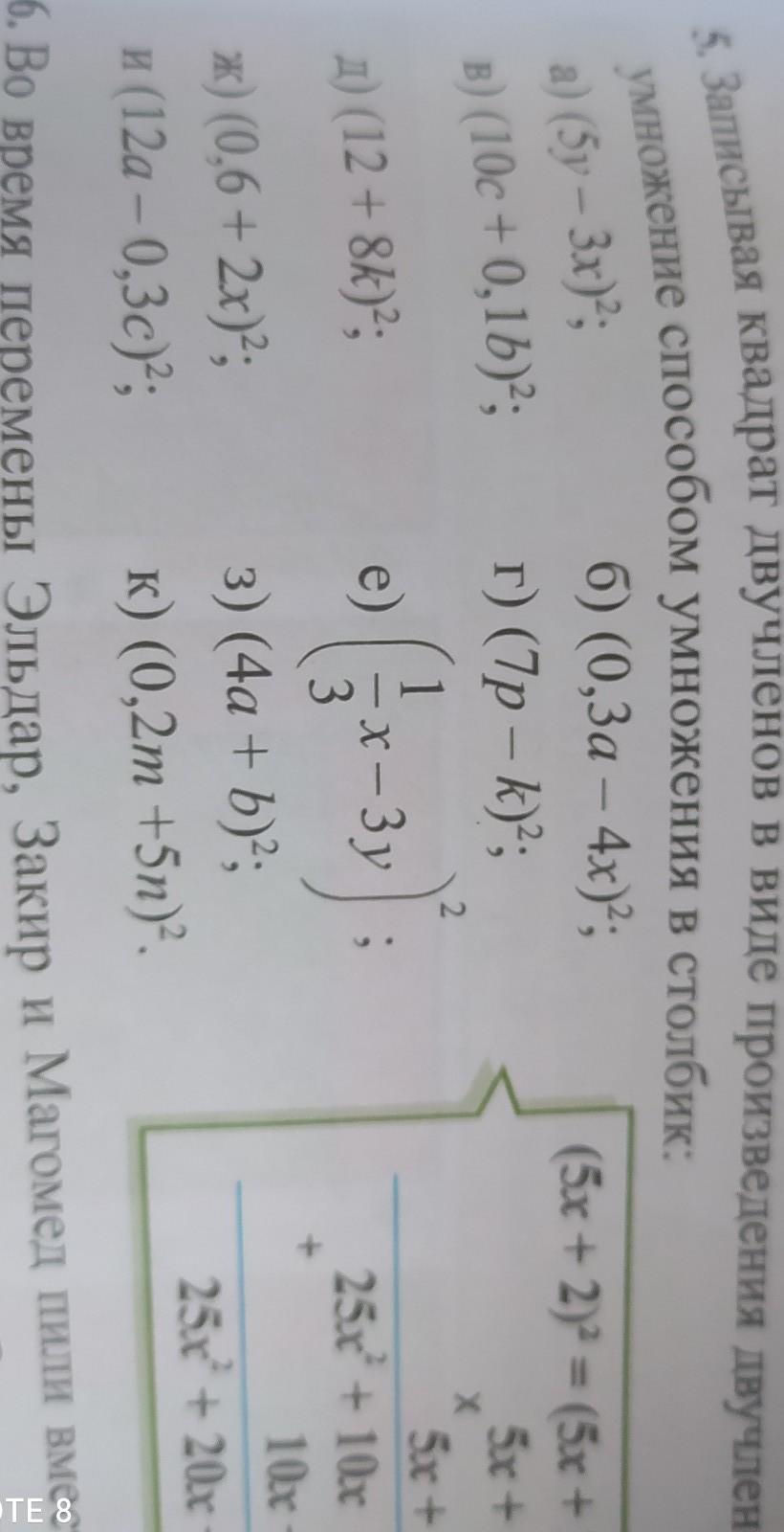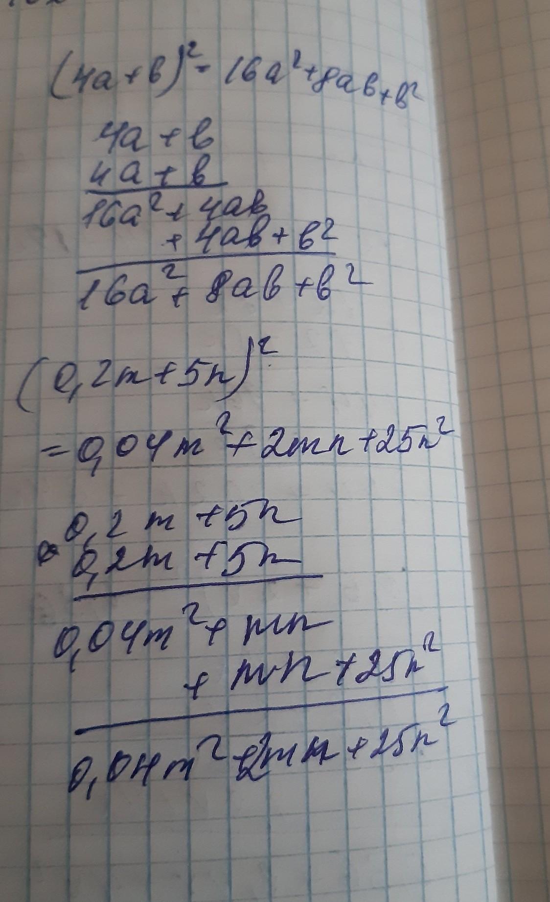 к) ( 0,2m + 5n )²= 0,04m² + 2mn + 25n² .