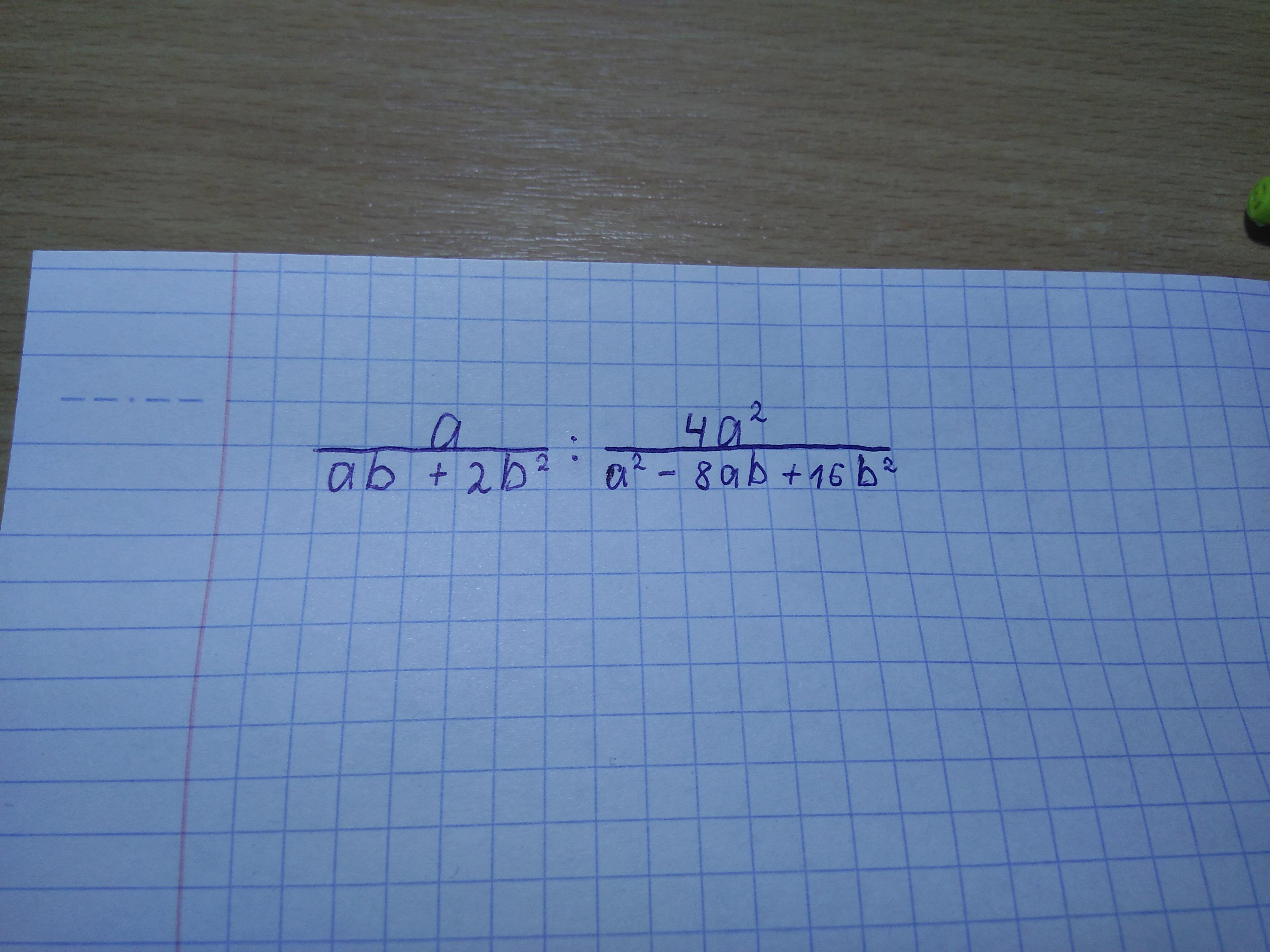 a/(ab + 2b²) : 4a²/( a² - 8ab + 16b²) = a/ b(a + 2b ) : 4a²/( a - 4b )² = a/ b(a + 2b ) X