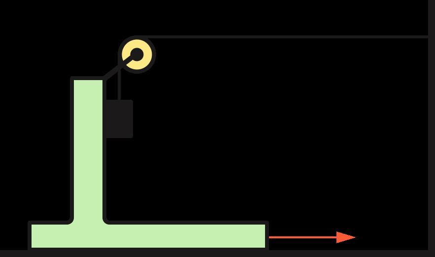 В системе, показанной на рисунке, небольшой тяжёлый груз опускается, натягивая нить и подтягивая к стене раму. Рама толкает перед собой груз. При этом ускорение груза равно 2,5 м/с2. Найдите ускорение рамы. Тела движутся поступательно, нить не провисает. Ответ выразите в м/с2, округлив до сотых.