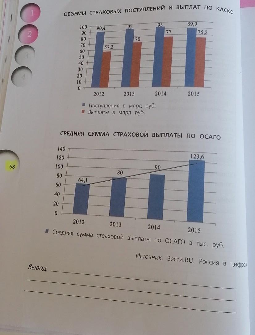 Задание : исследуйте данные, представленные на диаграммах на странице 68,и сделайте вывод.)