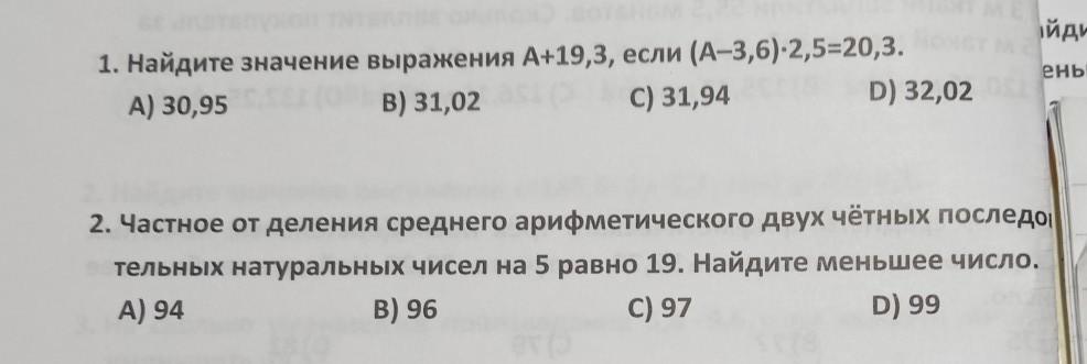 Ответ: 1 . В ) 31,02 . 2 . 94 .