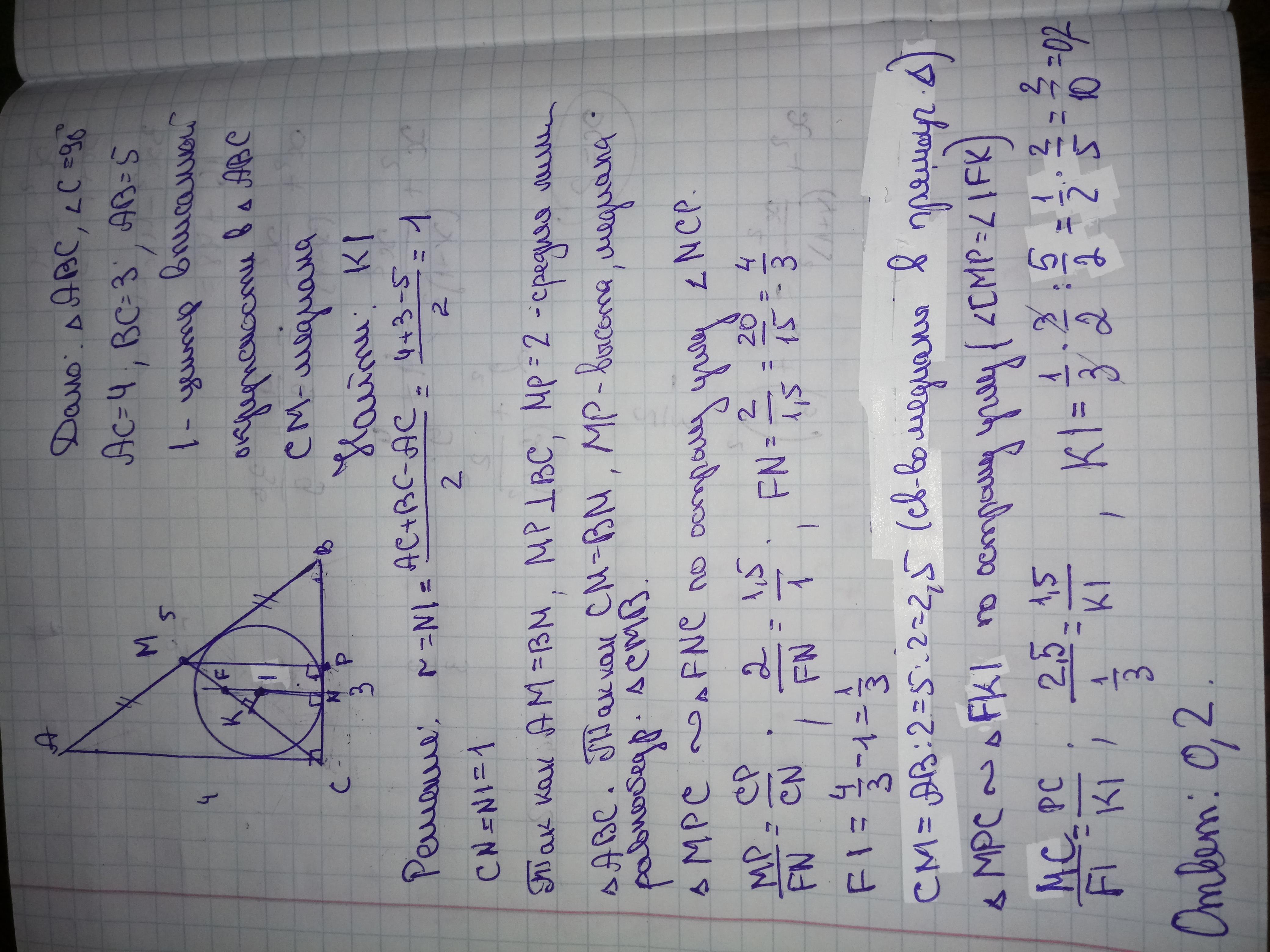 r=IK =IN - отрезки, проведенные из центра вписанной окружности к точкам касания, – стороны квадрата КLNC.