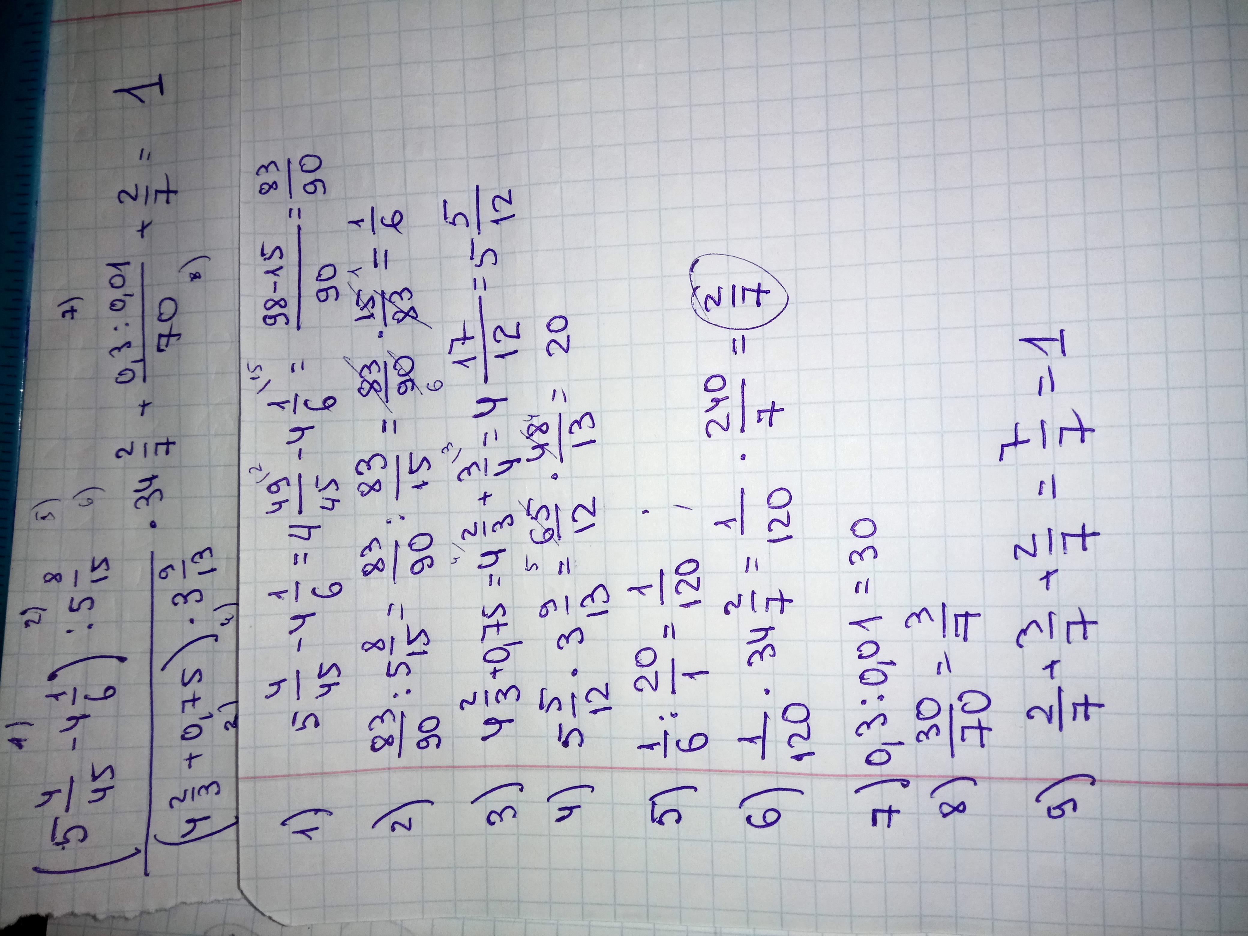 5) 1/6 : 20 = 1/6 * 1/20 = 1/120