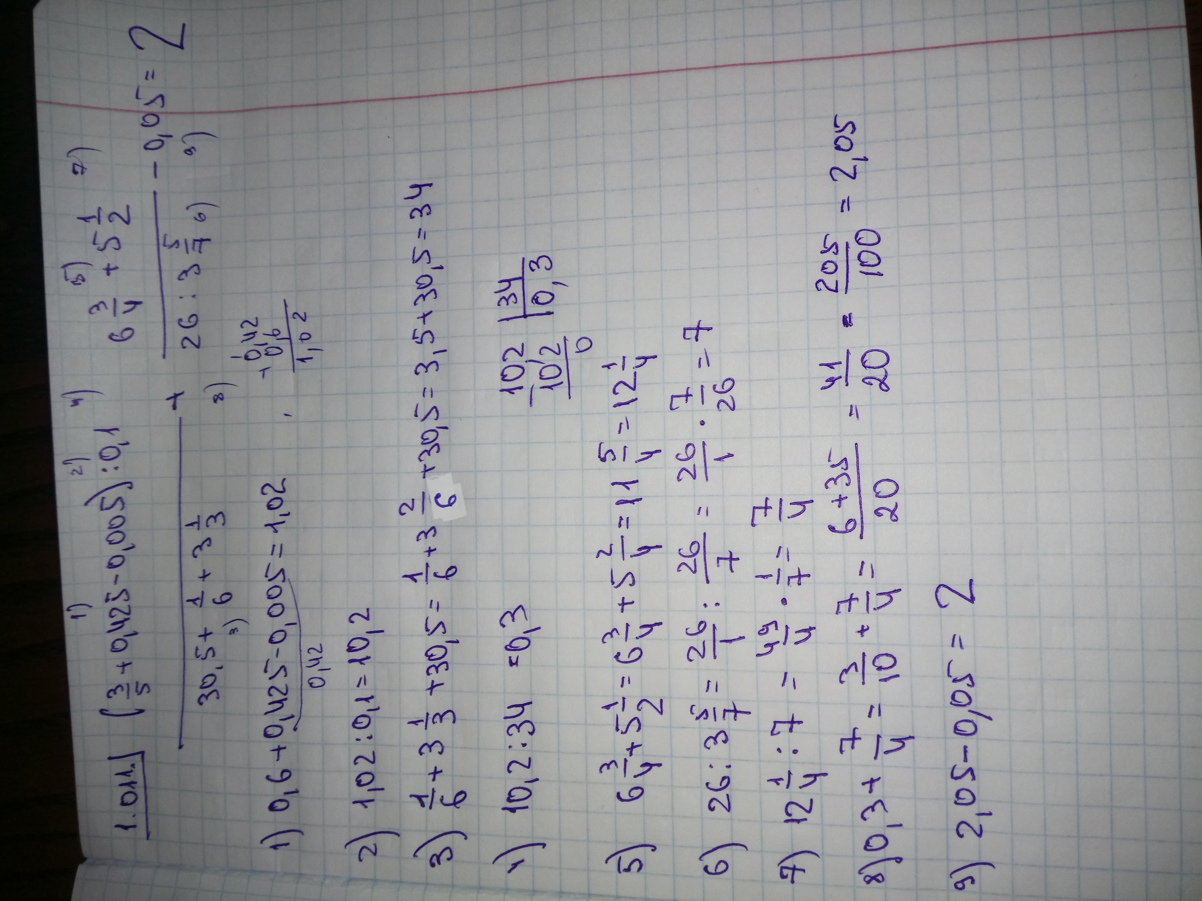 1) 3/5 + 0,425 = 0,6 + 0,425 = 1,025