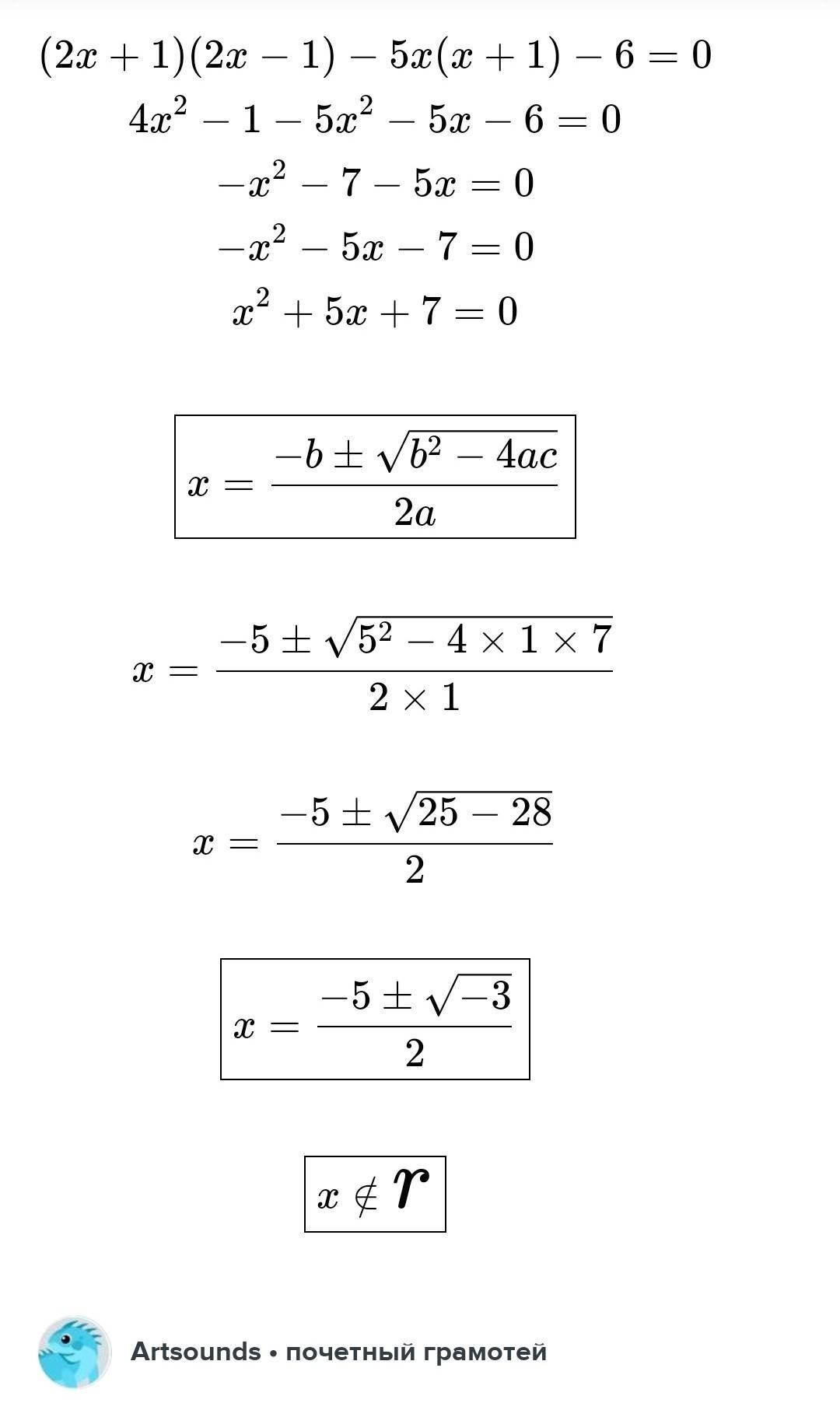 (2х+1)(2х-1)-5х(х+1)-6=0