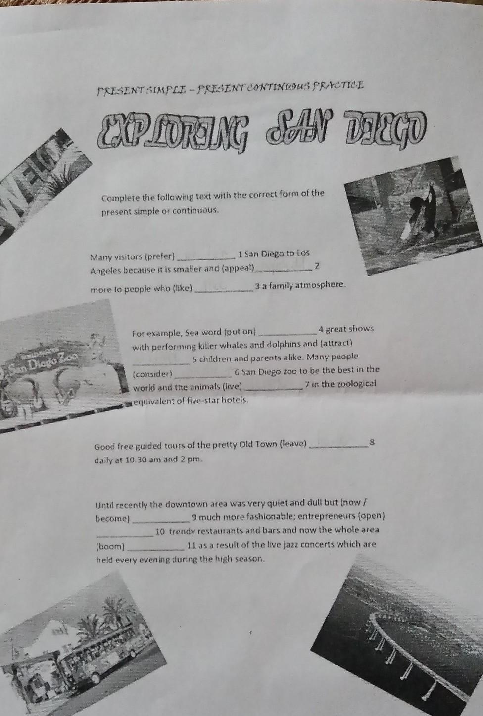 For example, Sea word (puts on) 4 great shows with performing killer whales and dolphins and (attract) 5 children and parents alike. Many people (consider) 6 San Diego zoo to be the best in the world and the animals (live) 7 in the zoological equivalent of five star hotels.