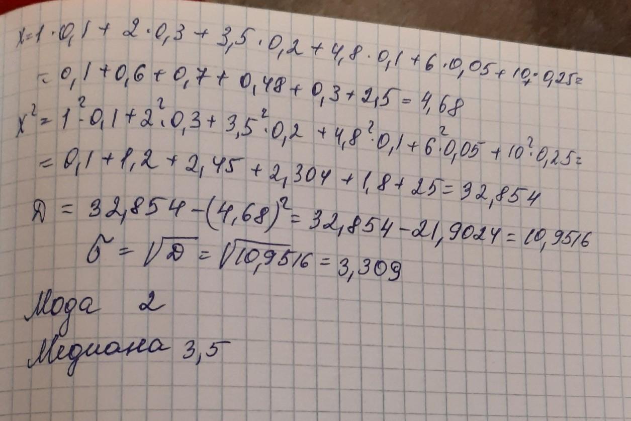 дать характеристику распределения признака, вычислив для этого: а) медиану; б) моду; в) среднее арифметическое; г) дисперсию; д) среднее квадратичное отклонение