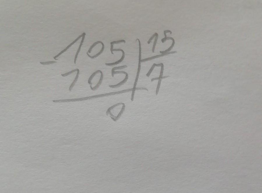 Объяснение: 1 и 10 не делится на 15, поэтому делим 105 делим на 15. 105:15=7