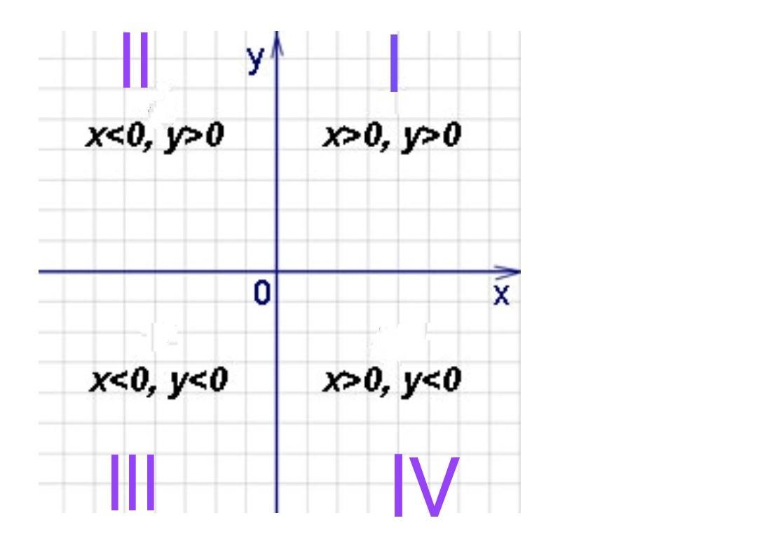 Ось абсцисс и ось ординат, пересекаясь, делят координатную плоскость на 4 четверти.