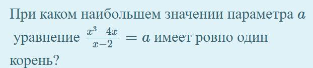 При каком наибольшем значении параметра a уравнение x^3−4x/x−2=a имеет ровно один корень?