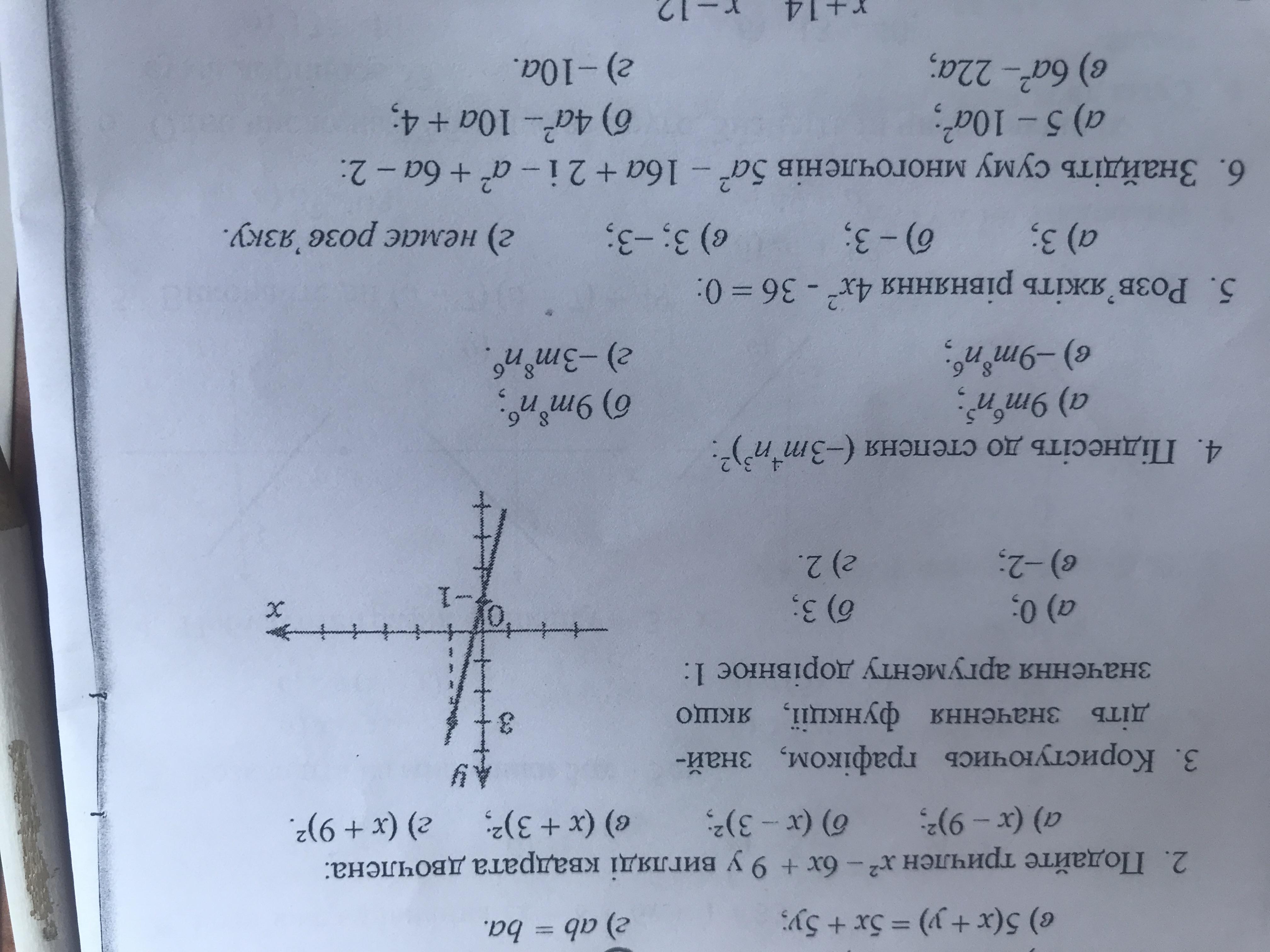3. Користуючись графіком, який подано на рисунку, знайдіть значення функції якщо значення аргументу дорівнює 1: