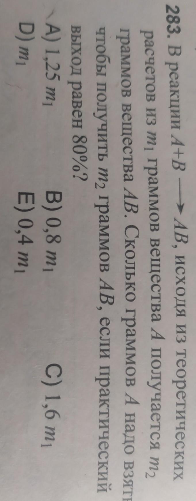 Допустим, что масса А равна 1 кг. Тогда выход будет 800 г и это будет вещество АВ. Но теоретически должно получиться 1 кг. Так пусть 1 кг и будет 80%. Тогда 20% - это потери.