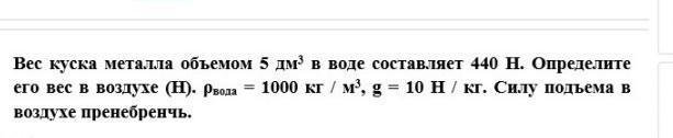 Дело в том,что в воде вес металла частично компенсируется выталкивающей силой. Найдя эту силу, можно вычислить вес тела в воздухе. Надеюсь нв фото все понятно.