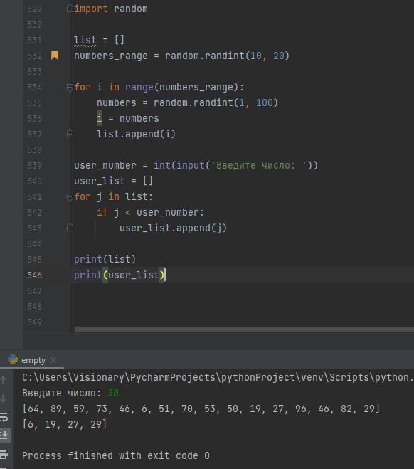 10 до 20. Потом программа должна найти в этом списке все элементы, меньшие