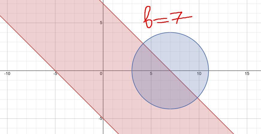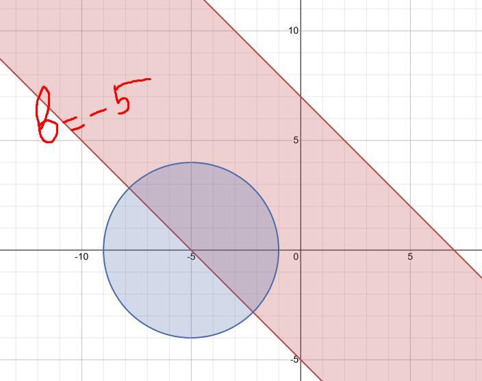 решение(на рисунке ниже показана окружность при b=-5 и прямые которые отсекают нужную площадь)