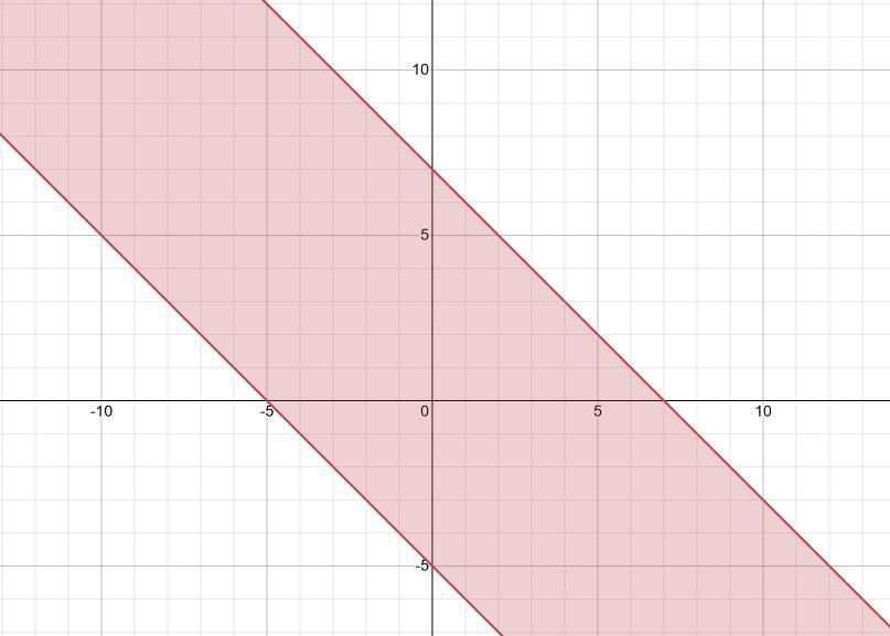 с штриховкой между этими прямыми. Изобразим данный график(изображение графика на рисунке ниже).