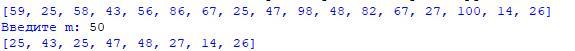 10 до 20. Потом программа должна найти в этом списке все элементы, меньшие
