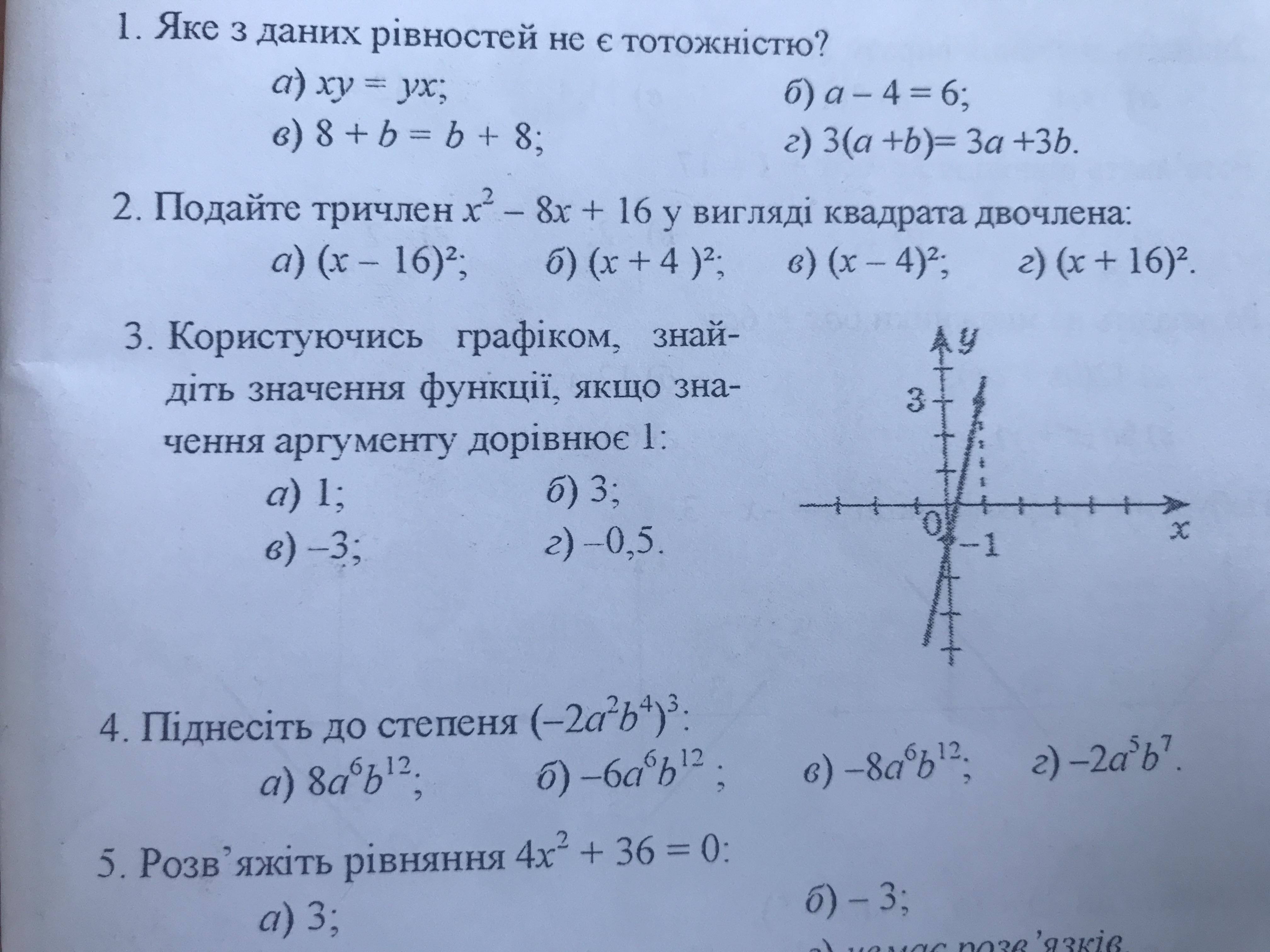 3. Користуючись графіком, який подано на рисунку, знайдіть значення функції, якщо значення аргументу дорівнює 1.