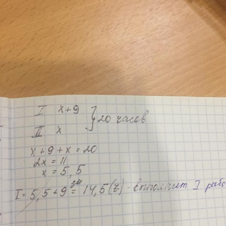 Двое рабочих, работая вместе могут выполнить работу за 20 дней. За сколько дней выполнил бы работу первый рабочий, если он должен работать на 9 дней больше, чем второй.
