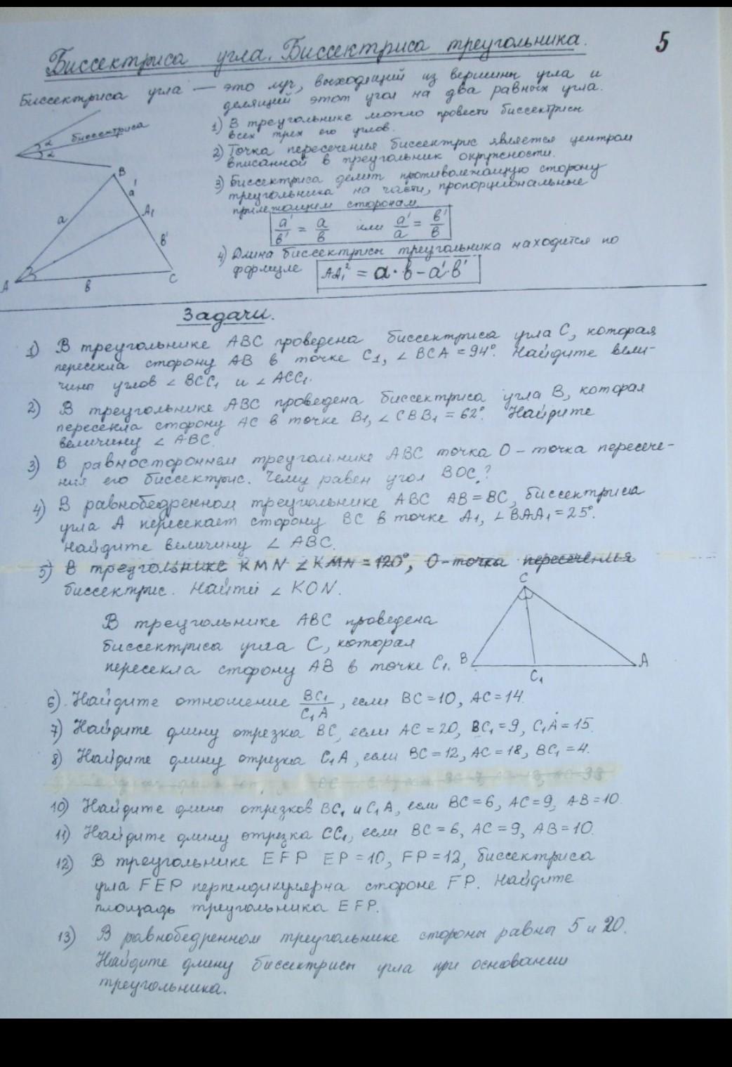 Биссектриса угла треугольника делит противоположную сторону в отношении, равном отношению двух прилежащих сторон.