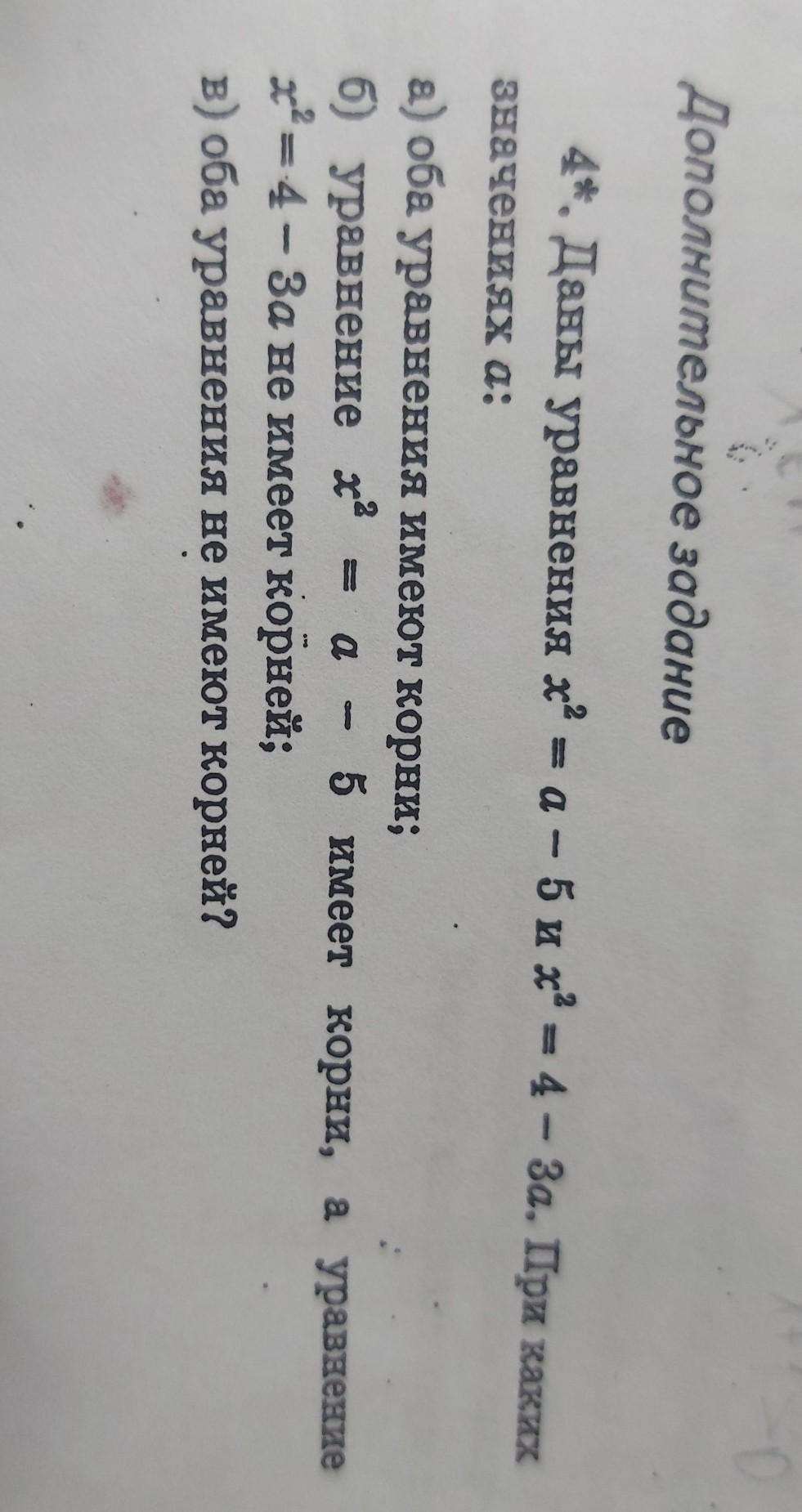 а)х²=а - 5 так как х² должен быть равной положительной числе то а€[5;+бес) , х²=4-3а здесь а может быть от (-бес до 1] такого числа не существует