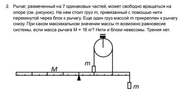 Груз m расположен на 8 делений справа и сила момент силы от этого груза направлен по часовой стрелке и будет со знаком плюс в уравнении. Второй груз m переброшен через блок и приложен в 5 делениях от точки опоры, момент от этого груза направлен против часовой стрелки и будет в уравнении моментов со знаком минус.