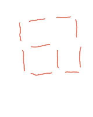 Сторона більшого квадрата складена з двох паличок, а меншого - з однієї. Як за допомогою 10 однакових паличок побудувати два різних квадрати?