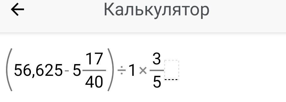 (56,625 - 5 17/40 ) : 1 3/5=(56,625 - 5 ,425 ) : 1,6=32