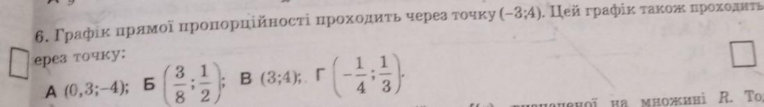 графік прямої пропорційності проходить через точку (-3;4). Цей графік також проходить через точку