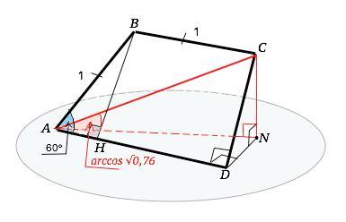 ВСDA - прямоугольник, HD=BC=1, СD=BH=√3/2=0,5•√3