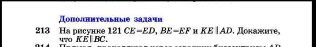 KE||AD (по условию) и BC||AD. Из следствия из аксиомы о параллельности прямых следует, что KE||BC. Что и требовалось доказать.