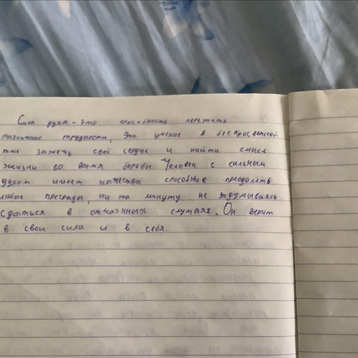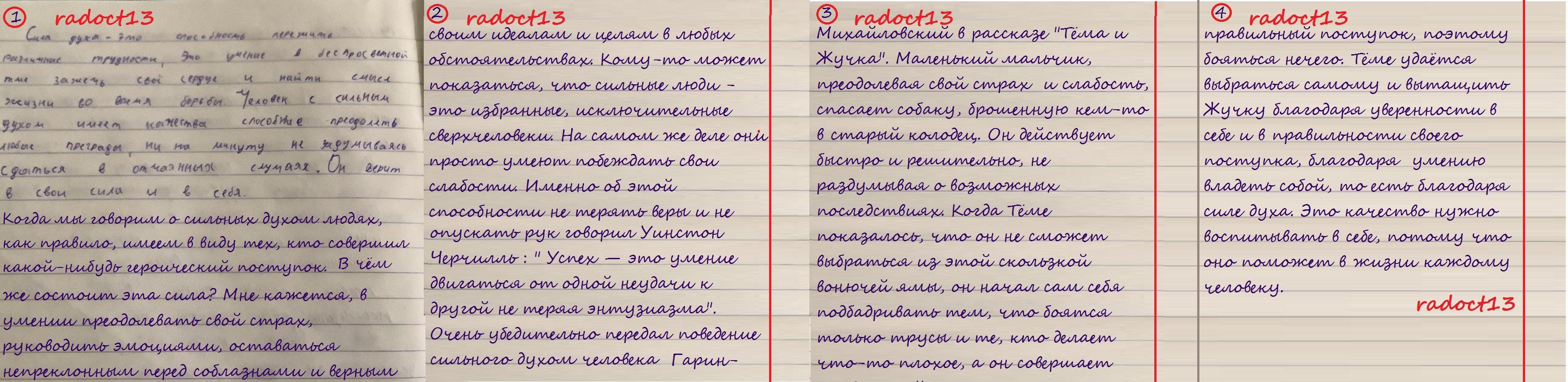 Ребята, мне надо написать сочинение,я написал половину, а дальше не могу придумать ничего,помогите пожалуйста ,извиняете за почерк,сочинение на тему что такое сила духа