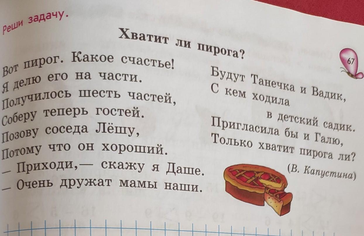 Пирог поделили на 6 равных кусков, значит 1 кусок = 1/6 пирога
