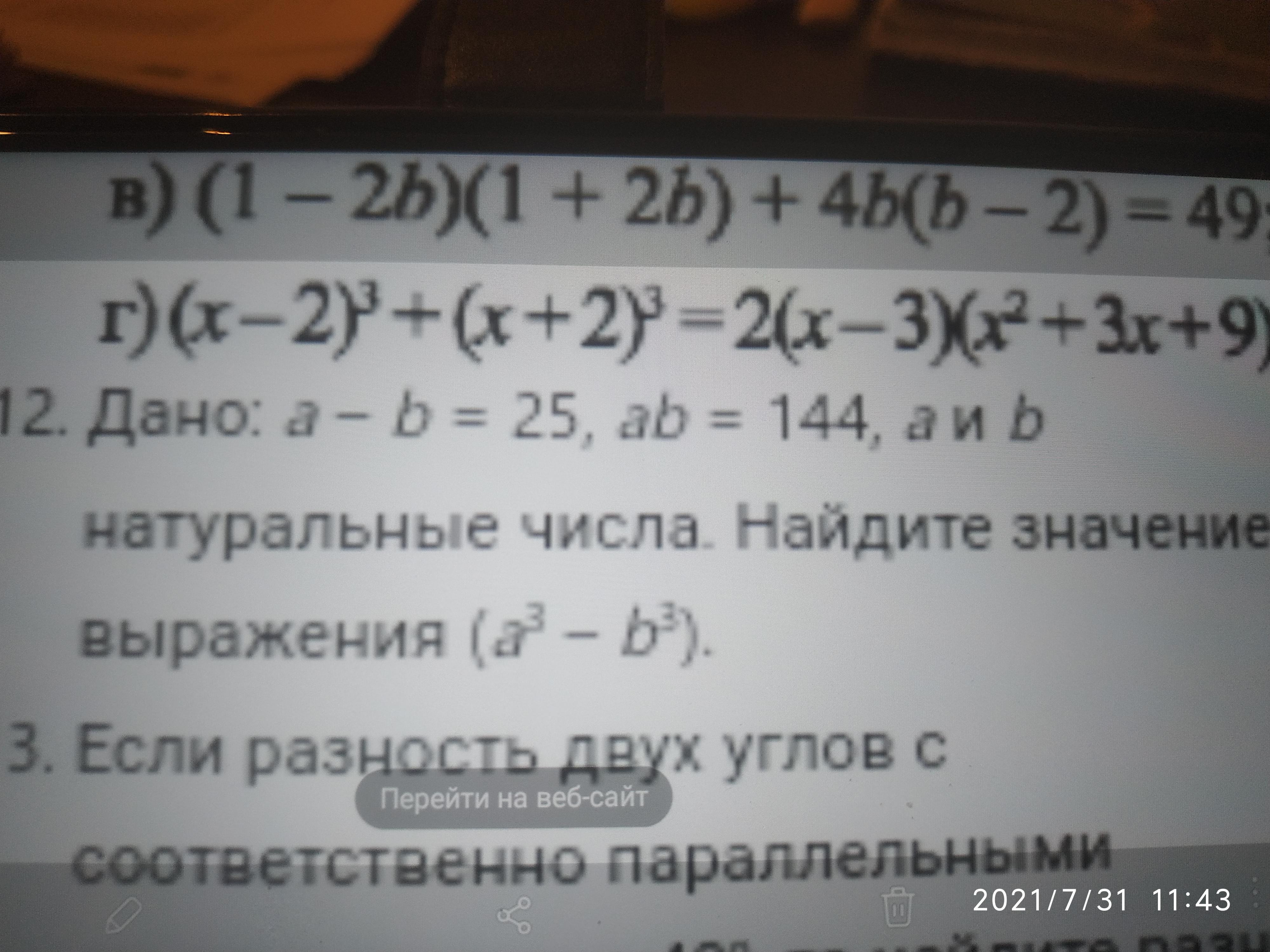 2) (a³-b³)=(a-b)(a²+b²+ab)=25(913+144)=25×1057=26425
