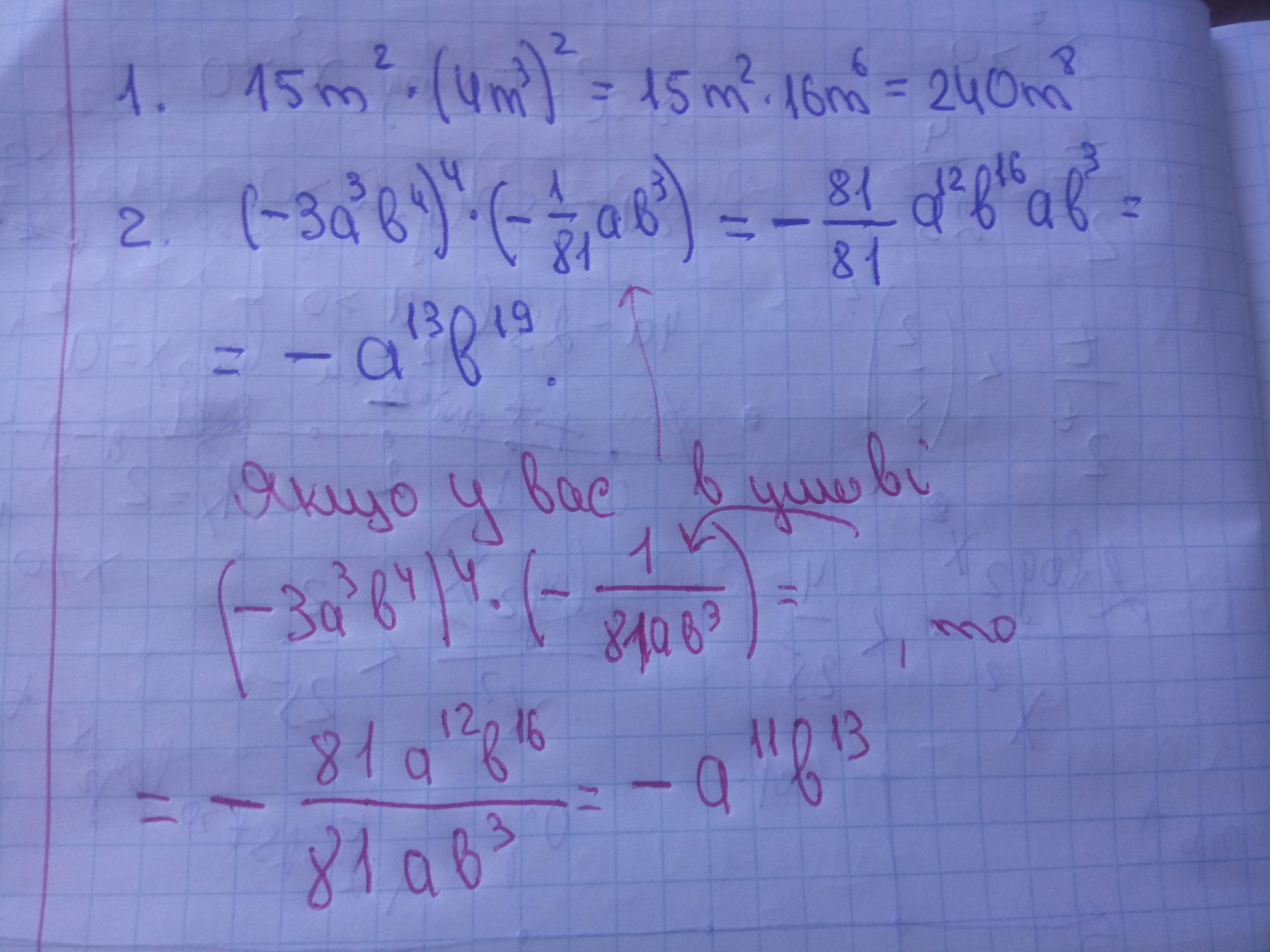 1)15m^2*(4m^3)^2=15m^2*16m^6=240m^8