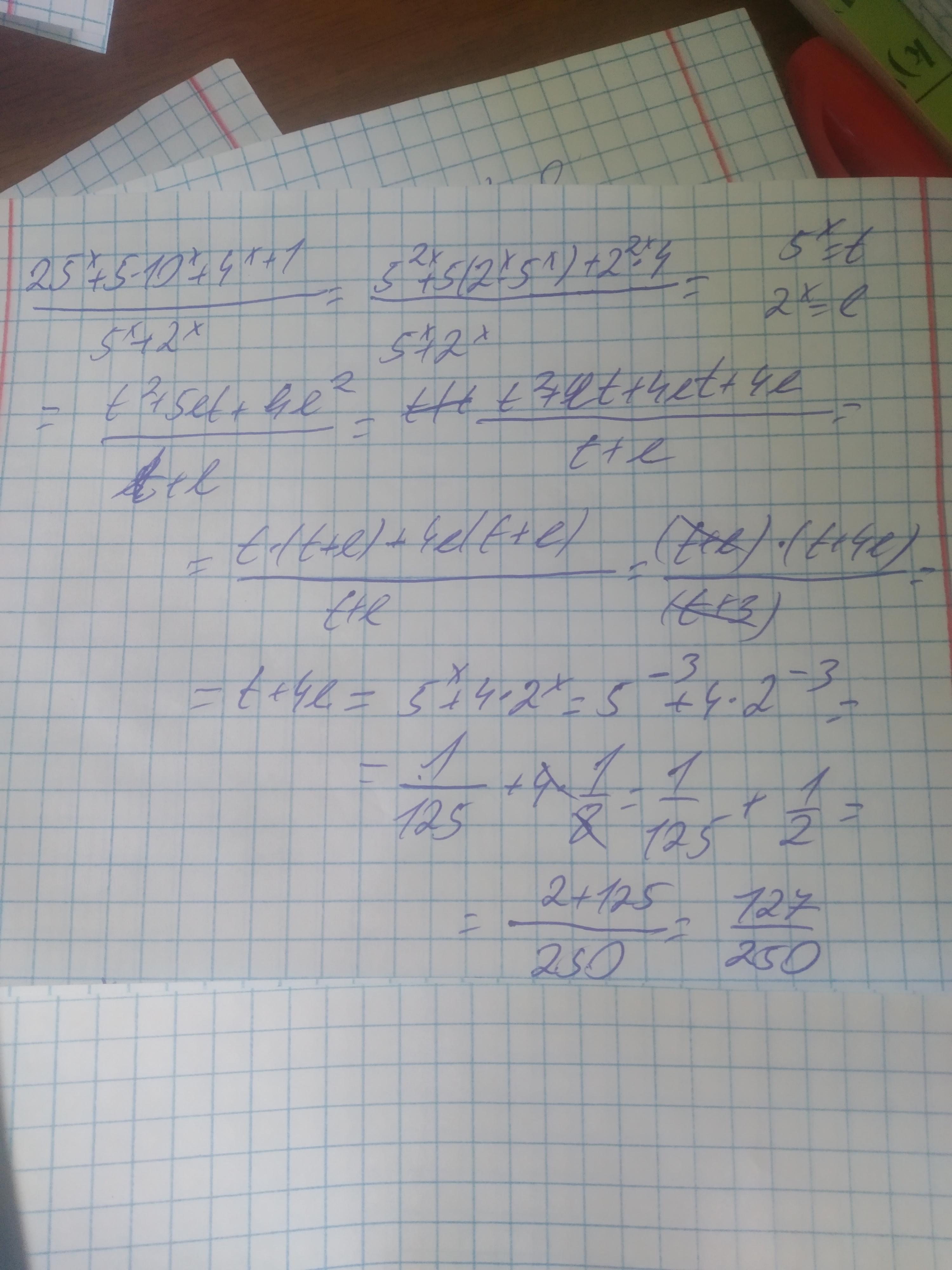 Можешь 5^х назначить t а 2^х - e ,и решать.