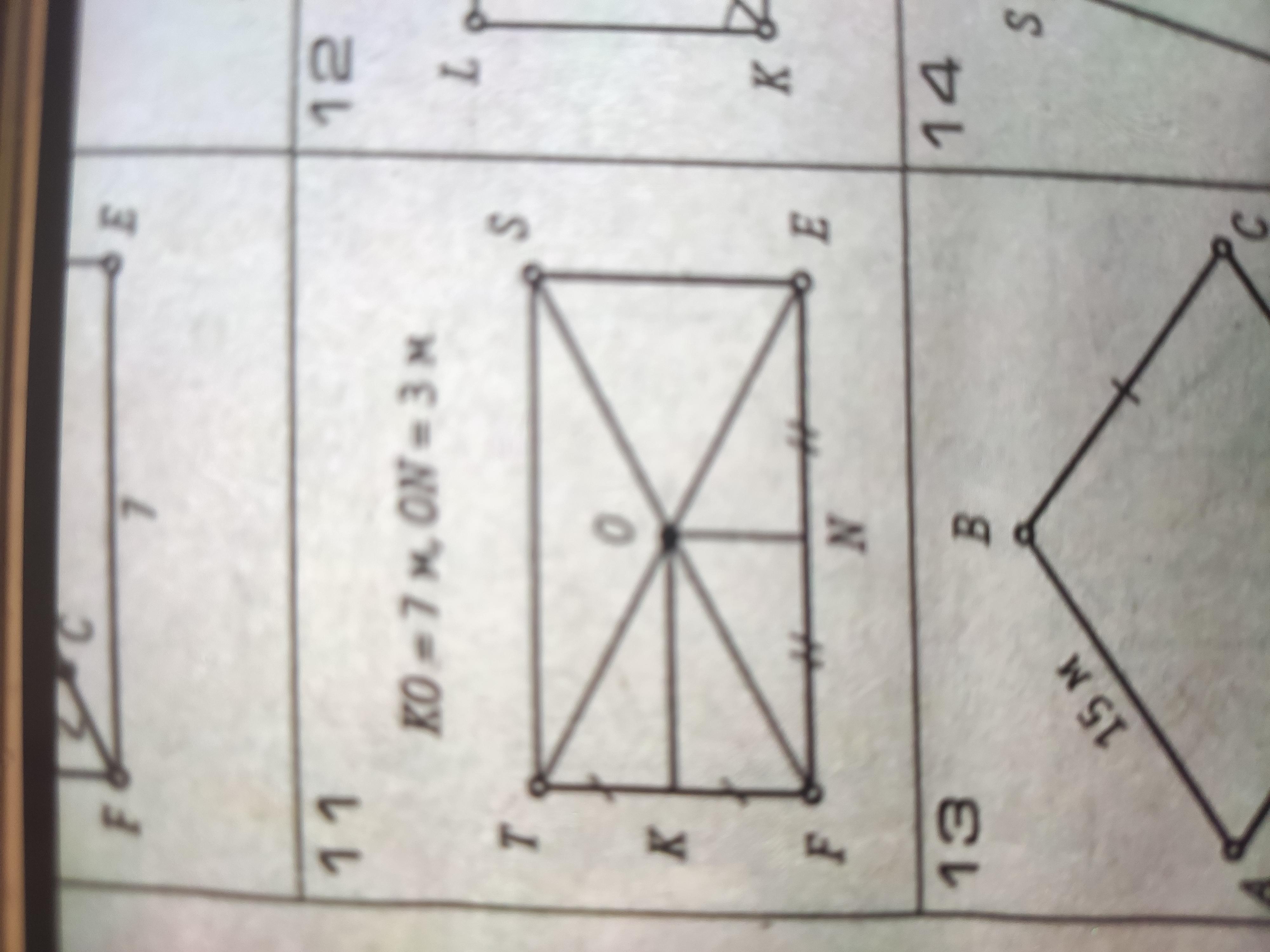 КО=FN=7см. FN=NE=7см. FE=FN+NE => FE=7см+7см=14см.