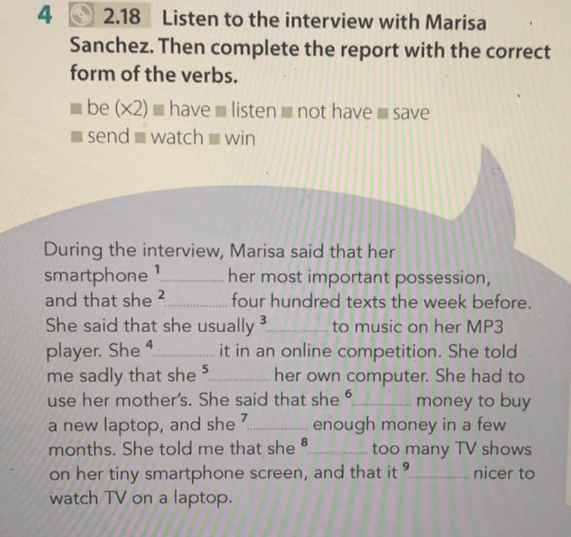 1. was 2. had sent 3. listened 4. won 5. did not have 6. had 7. had saved