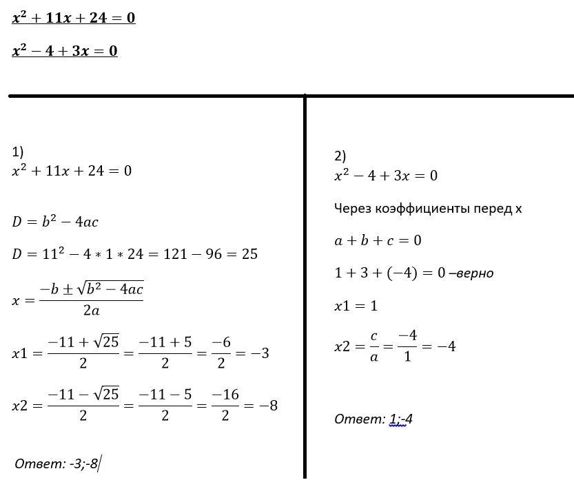Во втором уравнении есть интересная особенность: коэффициенты в сумме дают 0: a + b + c = 1 + 3 - 4 = 0.