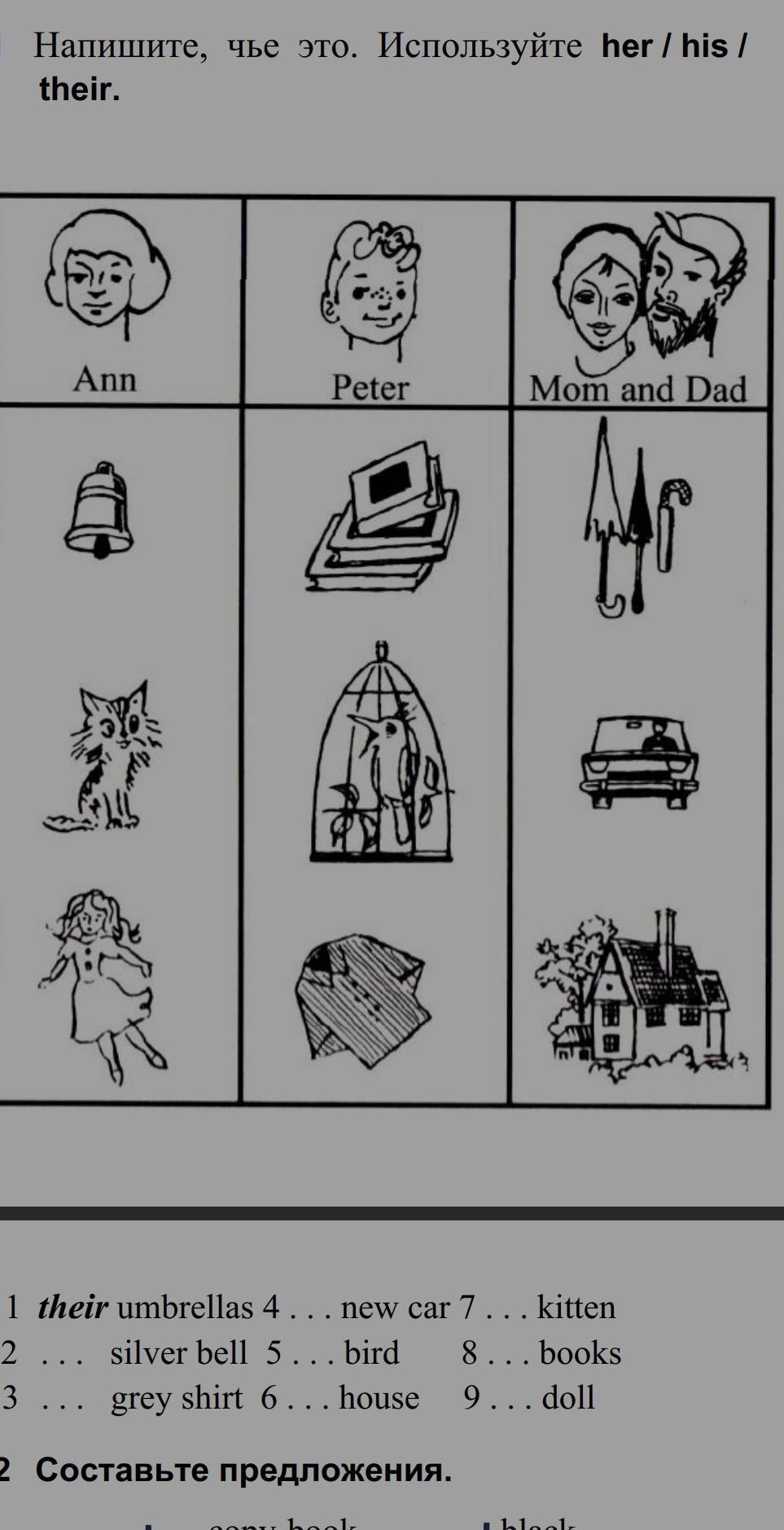 2 her 3 his 4 their 5 his 6 their 7 her 8 his 9 her