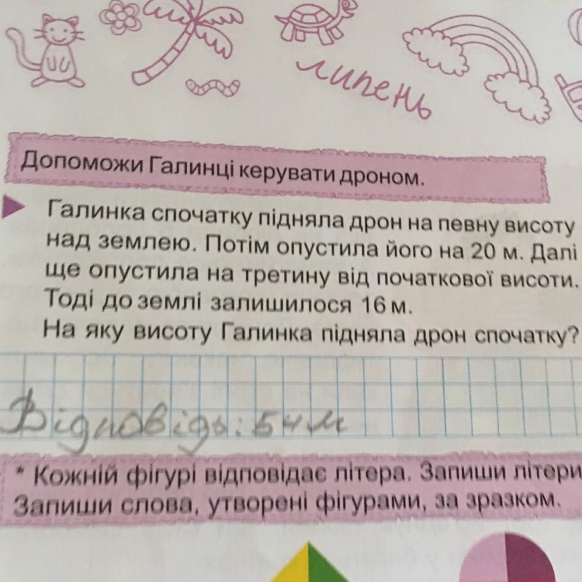 Тогда, если бы Галинка не опускала дрон на 20 метров то его высота будет равна 16+20=36 метров и это составляет 2/3 от первоначальной высоты.