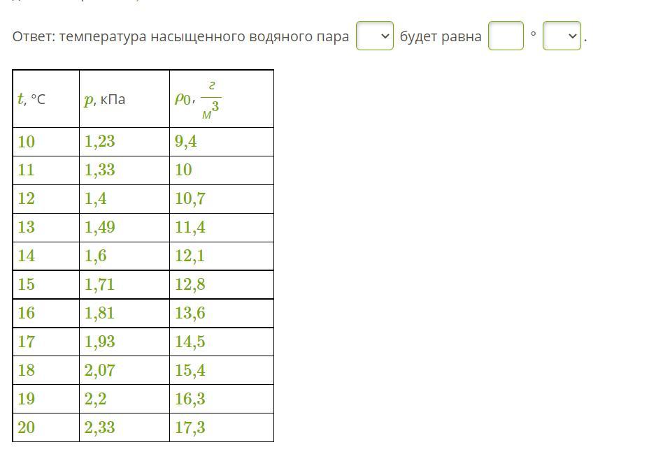 температура насыщенного водяного пара t будет равна 10 °C