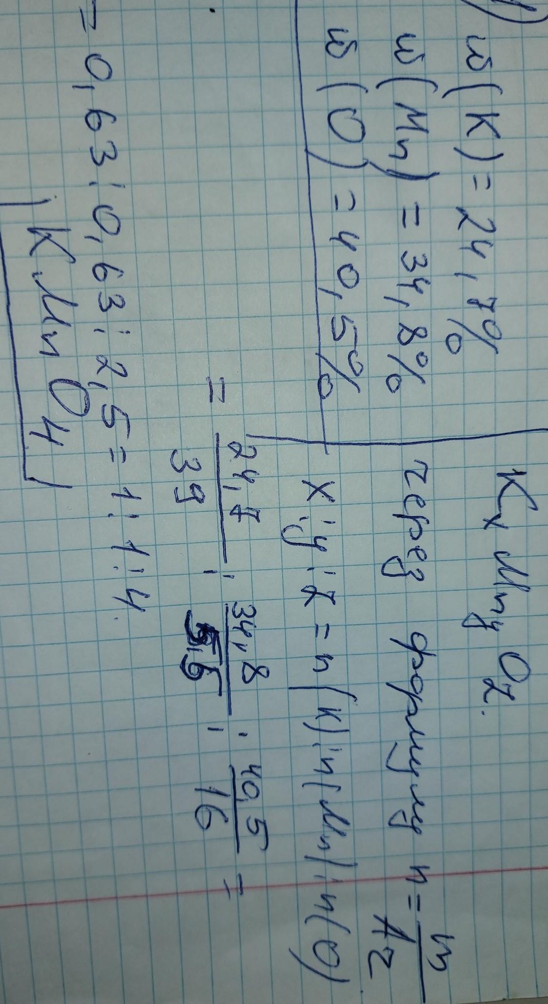 определите формулу соединения калия с маргенцем и кислородом, если массовая доля осставляет 24.7 %, 23.8% и 40.5%