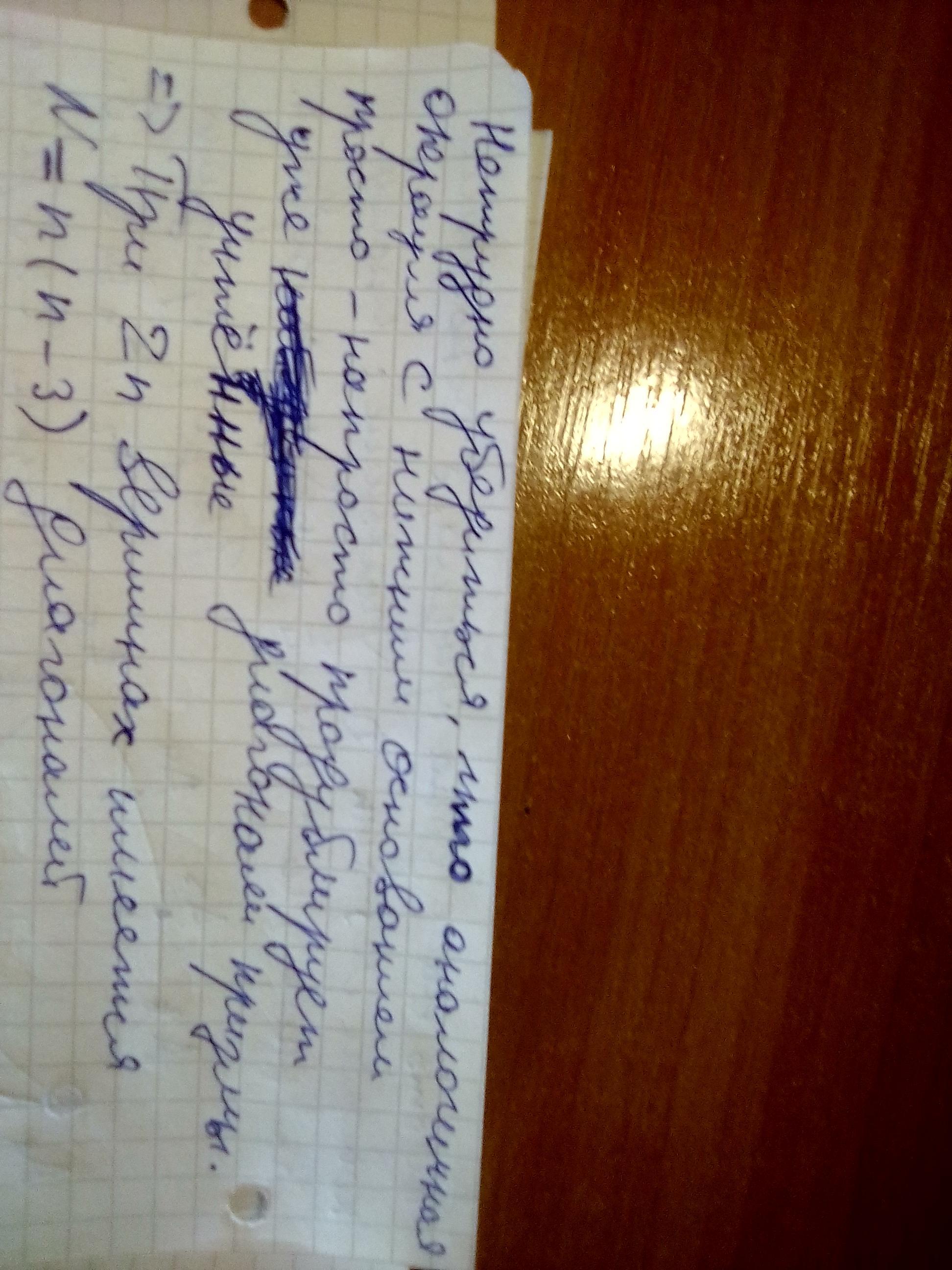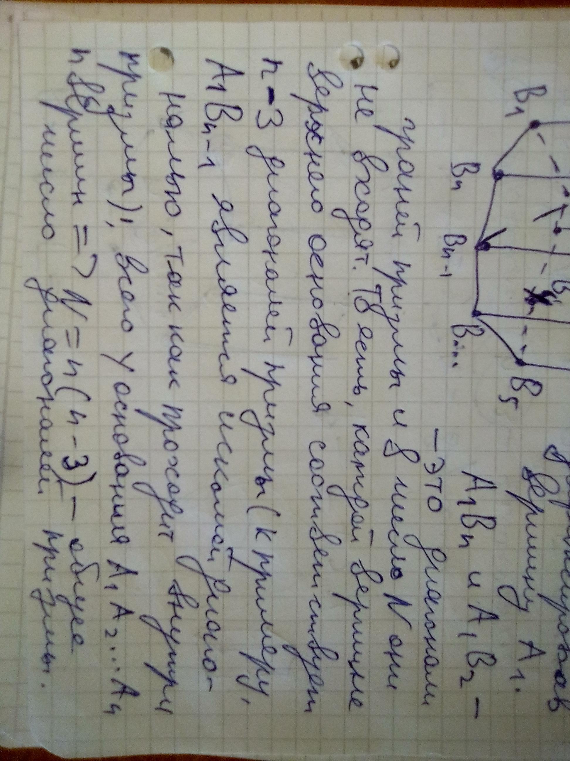 две его вершины, не лежащие в одной грани) число N диагоналей призмы равно: N = n(n-3) = 13·(13-3) = 13·10 = 130 ⇒ N - В = 130 - 26 = 104