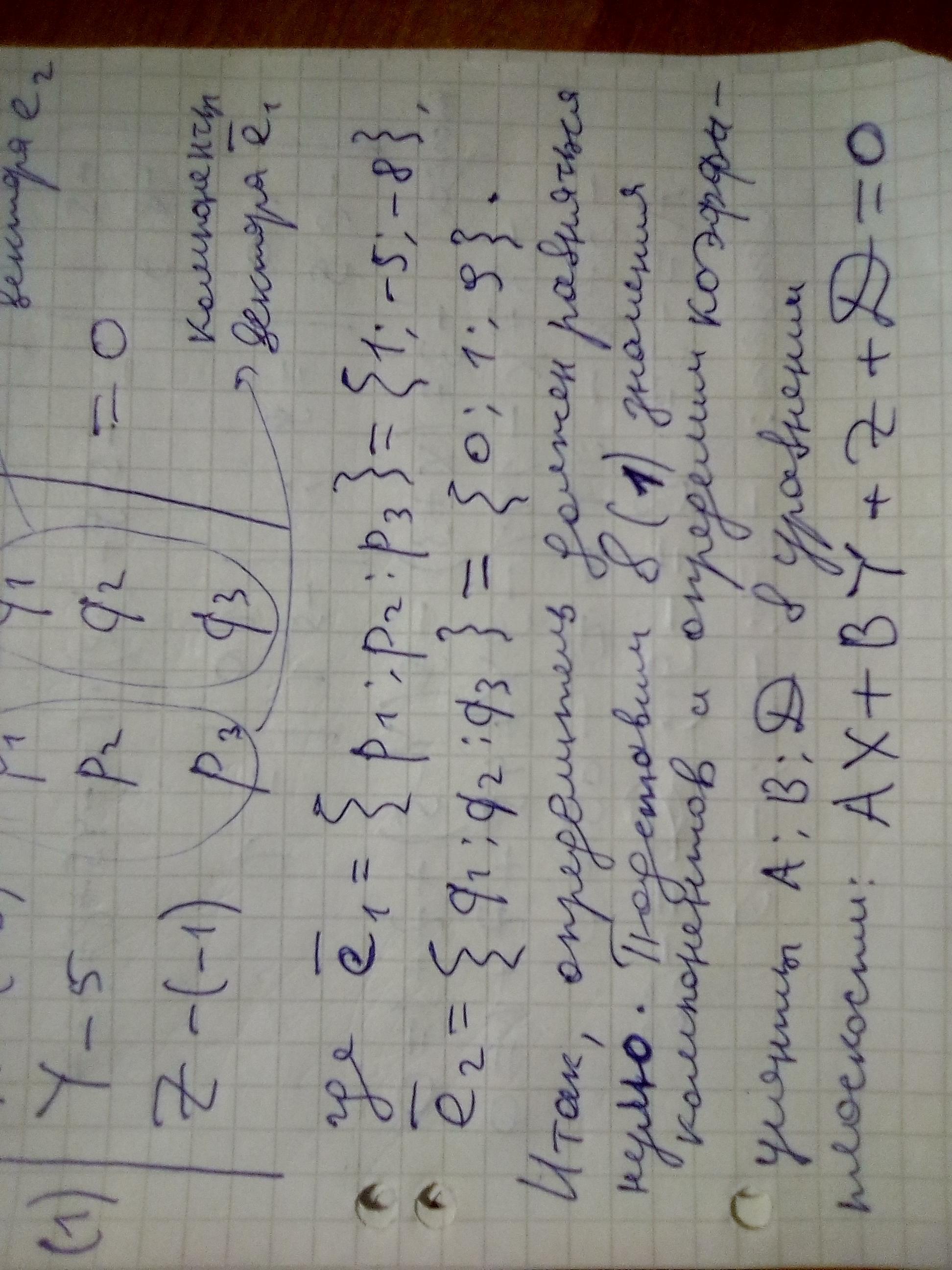 Запишите уравнение плоскости, проходящей через точку M0(−3,5,−1) параллельно векторам: e1¯¯¯¯¯={1,−5,−8} e2¯¯¯¯¯={0,1,9} Уравнение плоскости запишите в виде Ax+By+z+D=0. В ответ через точку с запятой введите значения: A;B;D