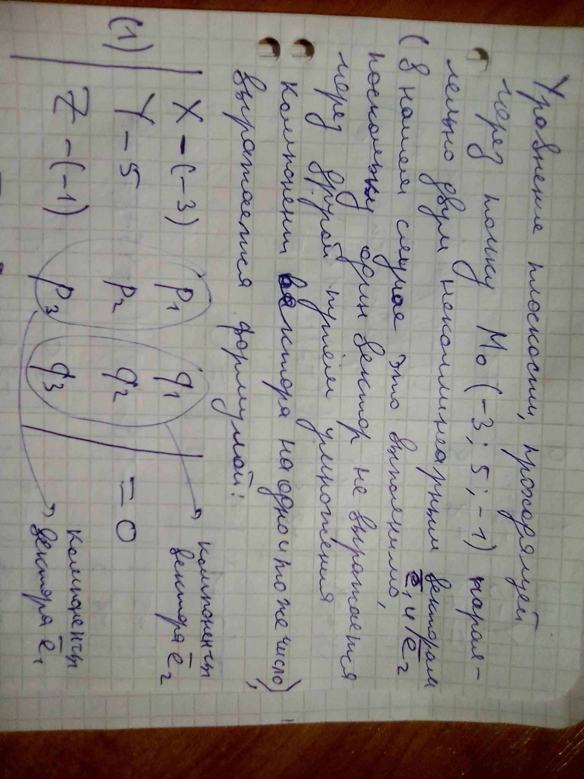 Для заданных условий уравнение плоскости определяется как смешанное произведение векторов.
