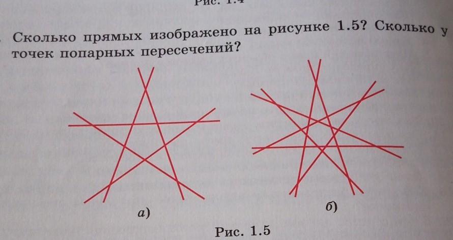 Сколько прямых изображено на рисунке 1.5? сколько у них точек попарных пересечений??? пжжж срочно даю 10 балов (наверное мало) Но помогите пожалуйста