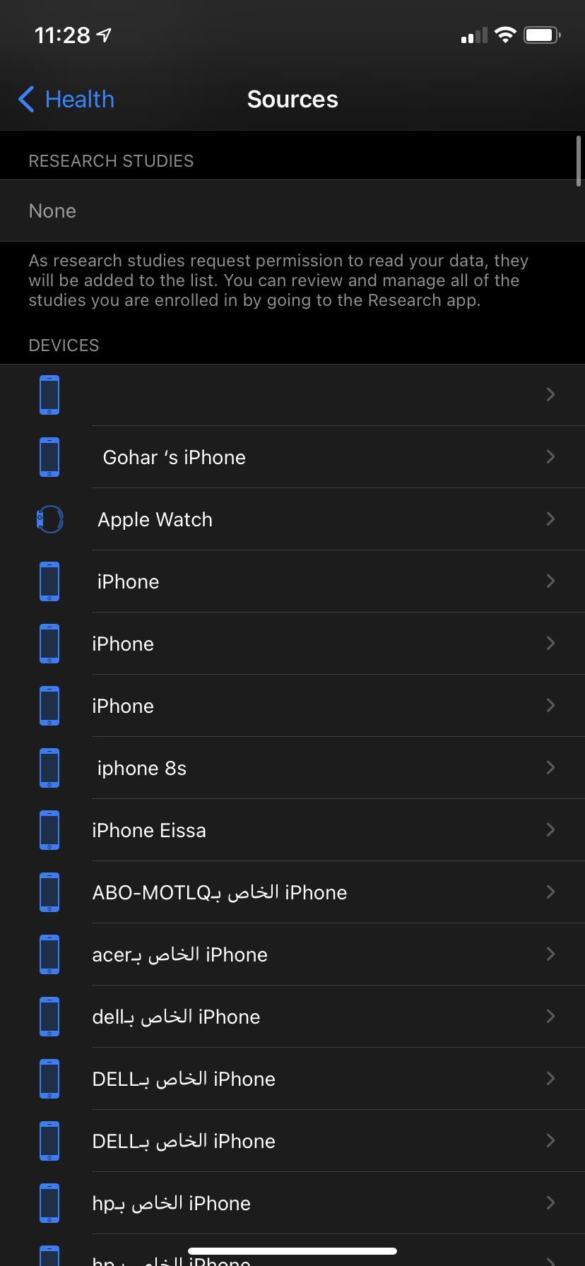 приложение здоровье на айфоне занимает много памяти. внутри огромное количество каких-то устройств(подозреваю, что это после входа в общий аккаунт апп стор)