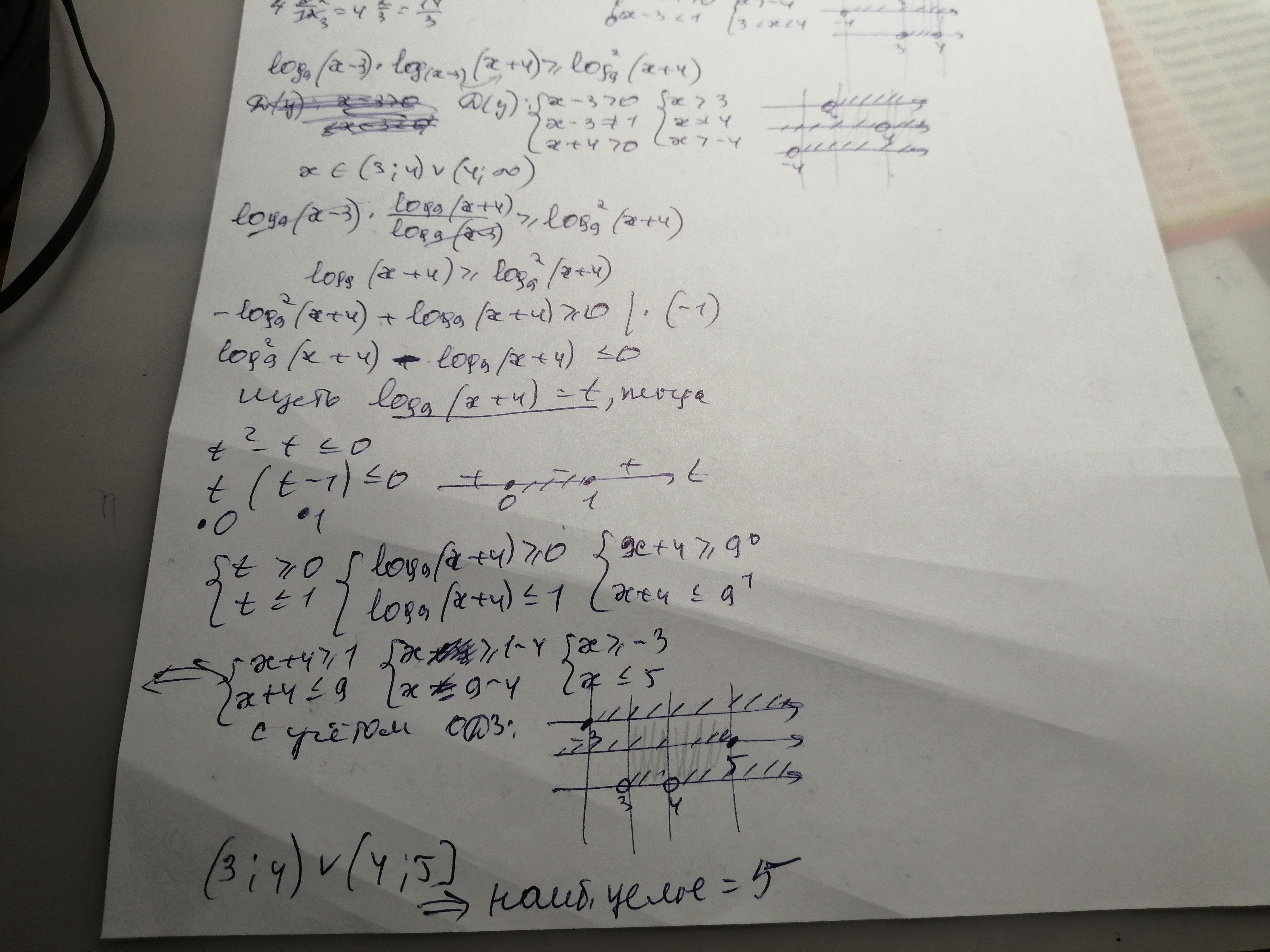 log₉(x−3)⋅log₍ₓ₋₃₎(x+4)≥log₉²(x+4) ; ОДЗ : хЄ( 3 ; 4 ) U ( 4 ;+ ∞ )