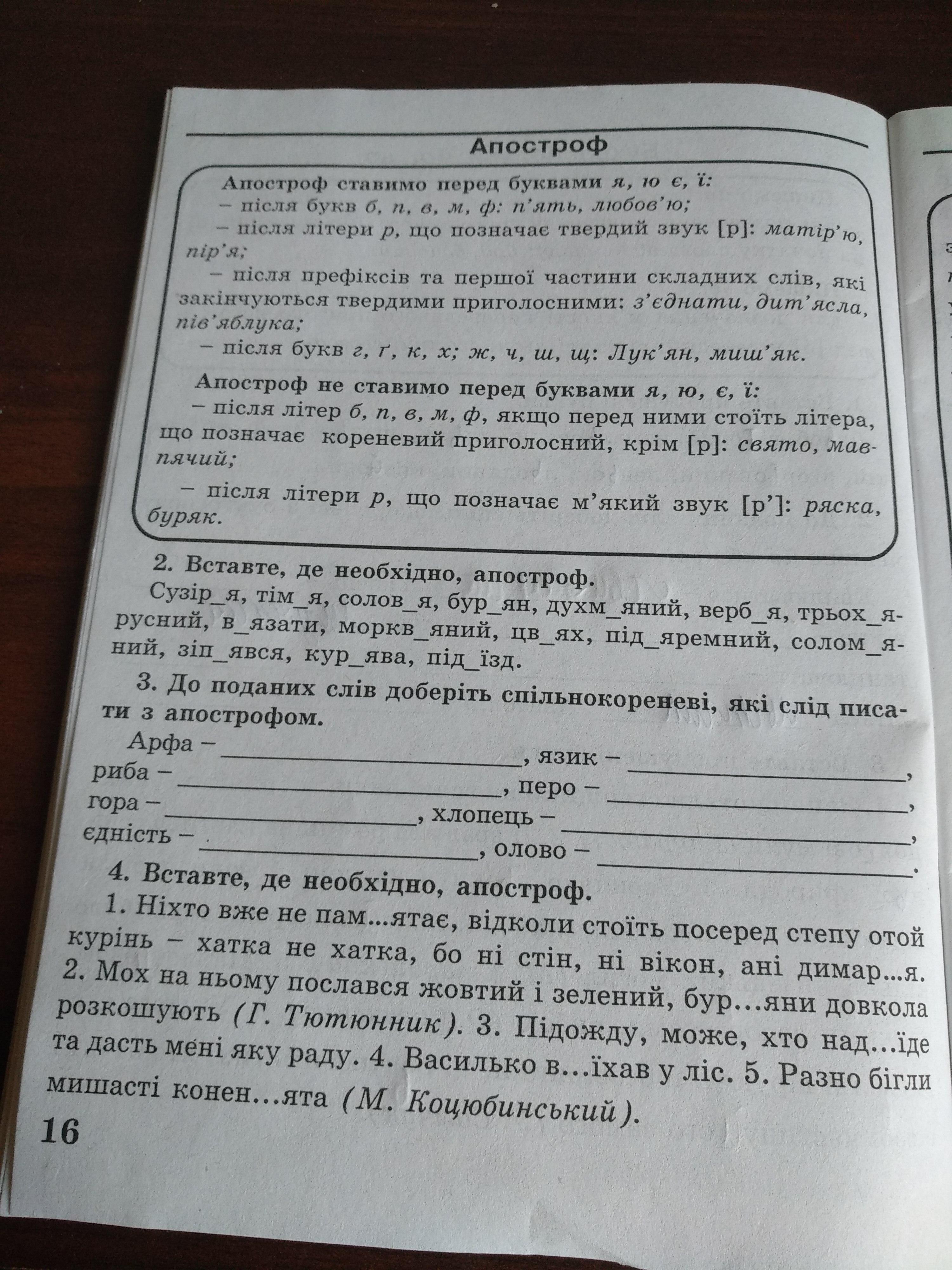 2.Сузір'я, тім'я,солов'я, бур'ян, духмяний, верб'я, трьохярусний,в'язати, морквяний,цвях, підяремний,солом'яний,зіп'явся,курява,під'їзд.